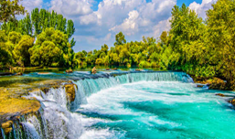 Manavgat Şelalesi: Antalya’nın Manavgat ilçesinde yer alır. Muhteşem bir doğa manzarasına sahip olan şelalede doğa manzaraları içinde macera yaşamaya imkan veren nehrin, belirli etaplarında rafting ve kano gibi çeşitli doğa sporları yapılabilmektedir.